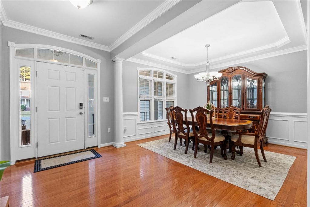 Positioned in the heart of Brickshire, 10437 Virginia Rail Terrace offers the ease of true first-floor living with the flexibility today???s buyers appreciate. The main level features a spacious primary suite, making daily life comfortable and convenient. Upstairs, a second private primary suite provides the perfect space for guests or extended family. Two additional bedrooms on the main level share a well-designed Jack and Jill bath, offering both function and privacy. Real hardwood floors, fresh carpet, and a cozy gas fireplace bring warmth throughout. The kitchen is outfitted with updated Whirlpool stainless appliances and opens naturally into gathering spaces made for connection. Outside, the yard is supported by an irrigation system and enclosed with a recently installed fence. Enjoy life in Brickshire, where golf, clubhouse dining, the pool, and miles of scenic trails are part of everyday living.