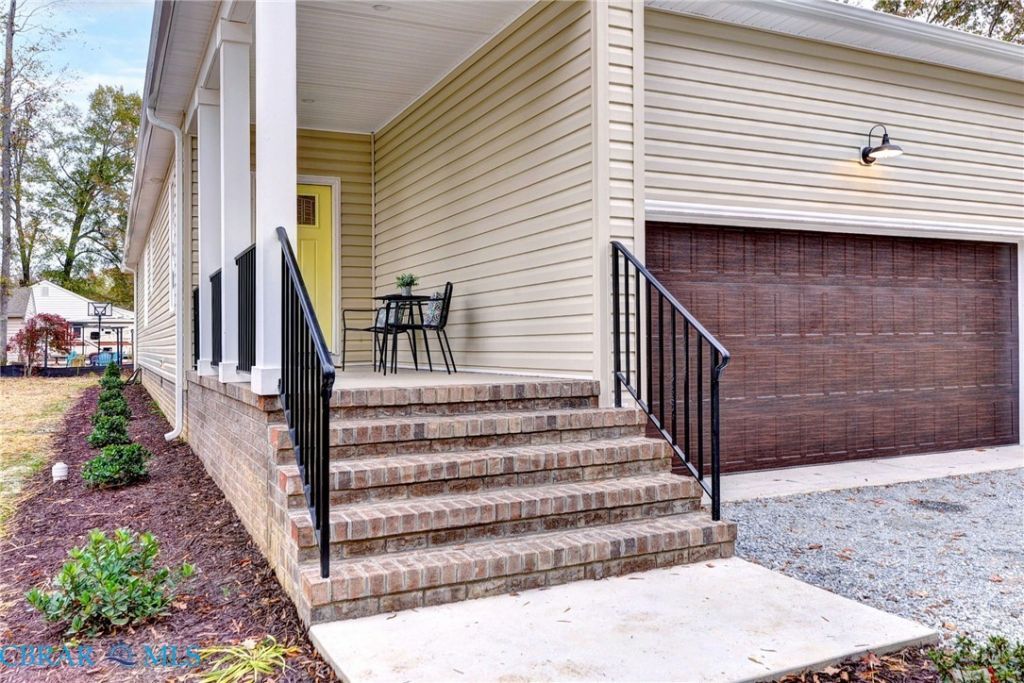 This Custom one-level Home offers a open floor plan that combines contemporary with traditional functionality. This 3-bed, 2-ba utilizes its 1,547 square feet of space to maximize livable area. The interior has 9-foot ceilings & wide doorways. The primary BR features a glass-enclosed shower, while both bathrooms have beautiful mirrors, ceramic floors, quartz tops & linen closets. The flooring is low-maintenance, high-scratch-resistance Luxury Vinyl Tiles. An inviting large covered front porch is complete with custom locally made railings. The kitchen is a highlight, featuring custom made cabinets, an island with quartz countertops, & all SS appliances. Efficiency is enhanced by quality PELLA windows & an 8-foot sliding door that leads to the covered porch.The 3 spacious bedrooms come with ample closet space. For outdoor living, the foot rear covered porch offers a perfect space to enjoy the outdoors. Additionally, the 2 car insulated and finished provides versatile space featuring an insulated high-end garage door. Convenient underground electricity, town water, & sewer services. between Williamsburg & Richmond.
