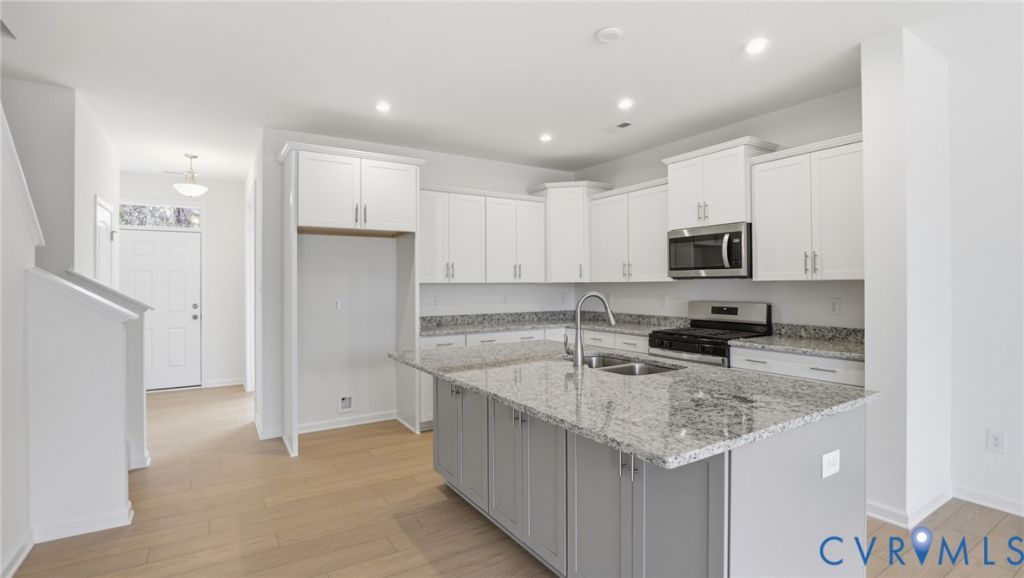 The Burlington is a two-story townhome with three bedrooms and 2.5 baths. The main living areas on the first floor showcase the stunning light natural EVP flooring. Upon entering, you'll be greeted by a formal dining room directly off the foyer. The gourmet kitchen, featuring crisp white cabinets and stone gray island cabinets with the elegant St. Cecilia countertops and striking brushed nickel accents, an island with a barstool area, and a spacious pantry, is open to the family room. A powder room for guests completes the first floor. Upstairs, you'll find the private primary suite, featuring an ensuite bath, dual vanities, and a spacious walk-in closet. Two additional bedrooms share a convenient hall bath with a tub/shower combo. A convenient hall laundry completes the second floor. Amenities in the community include a beautiful, state-of-the-art clubhouse with an Olympic-sized swimming pool, fitness center, and playground area for residents to enjoy!