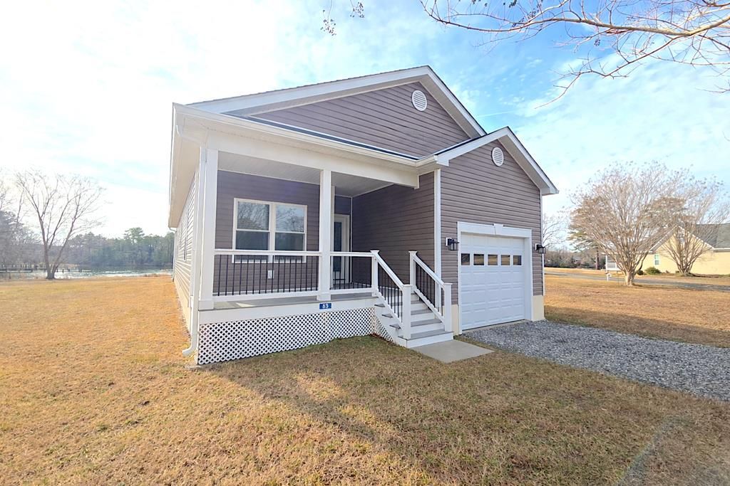 Enjoy low-maintenance waterfront living at an attractive price point in this brand new 3 bedroom, 2 bath home in the private Watermen's Cove community of Reedville. A deeded boat slip on Cockrell's Creek - just a short walk from your backyard - offers direct access to the Great Wicomico River and the Chesapeake Bay. Designed for easy one-level living, the bright open floor plan showcases beautiful water views and abundant natural light. The kitchen features stone countertops, a large island, and new GE appliances, while tray ceilings add architectural character to the living room and primary bedroom. The primary bath offers a tiled rain shower and double vanity. Two additional bedrooms and a second full bath provide flexible space for guests or a home office. LVP flooring, 9-foot ceilings, a dedicated laundry area, ample storage, and an attached garage complete the interior. With composite decking, a manageable lot size, association-maintained lawn care, and the convenience of community well and sewer (no septic system to maintain), you can spend more time on the water or lounging by the pool and less time on upkeep. Community amenities include a pool, small clubhouse, gazebo, firepit, and pier. Ideal as a weekend retreat, summer getaway, or full-time residence for those who prefer boating and relaxation over yard work and home projects - all at a price point that makes waterfront living more attainable.